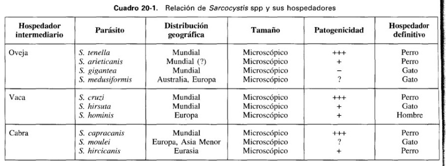 - Los perros son hospedadores definitivos de S. cruzi (S. bovicanis) S. miescheriana (S. suicanis), S. tenella (S. ovicanis), S. arieticanis, S. capracanis y S. hircicanis.